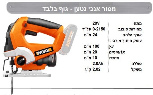 >> מסור ג'קסון נטען 20V גוף בלבד מבית WORX