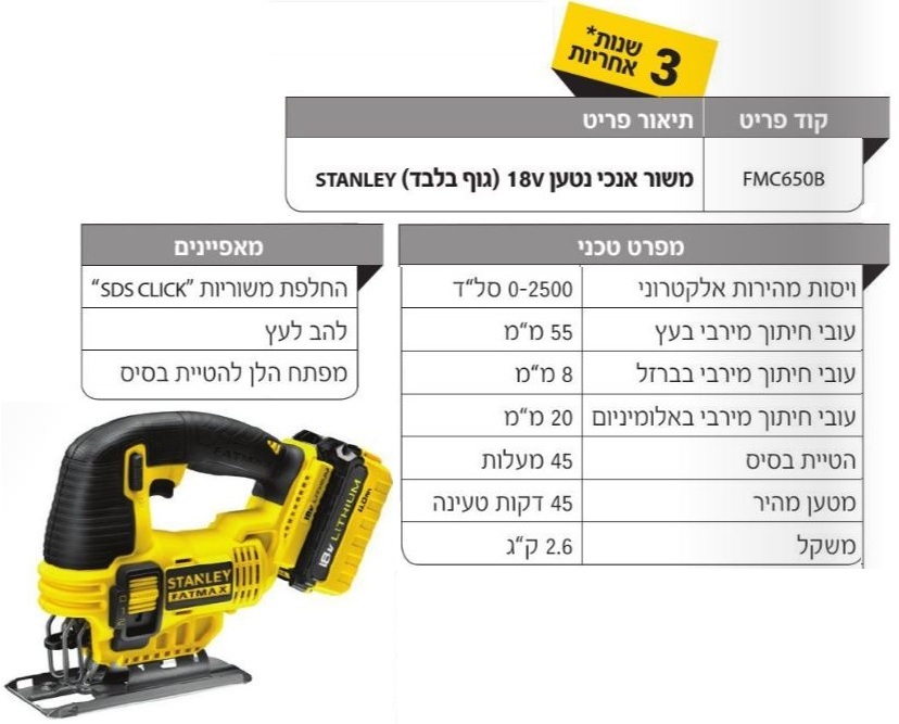 >> גוף מסור נטען 18V דגם FMC650B מבית Stanley
