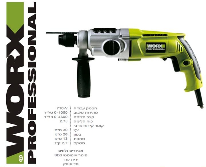 >> פטישון עם פוטר מתחלף 710W דגם WU330.3 מבית Worx