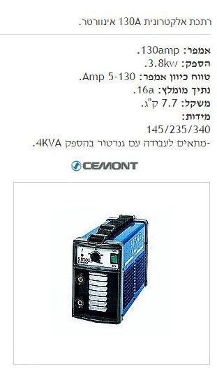 >> רתכת אלקטרונית 130A מבית CEMONT דגם S1401